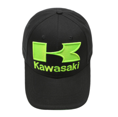 - Kawasaki Logo Motorcycle 3D Embroidered Baseball Hat Black.